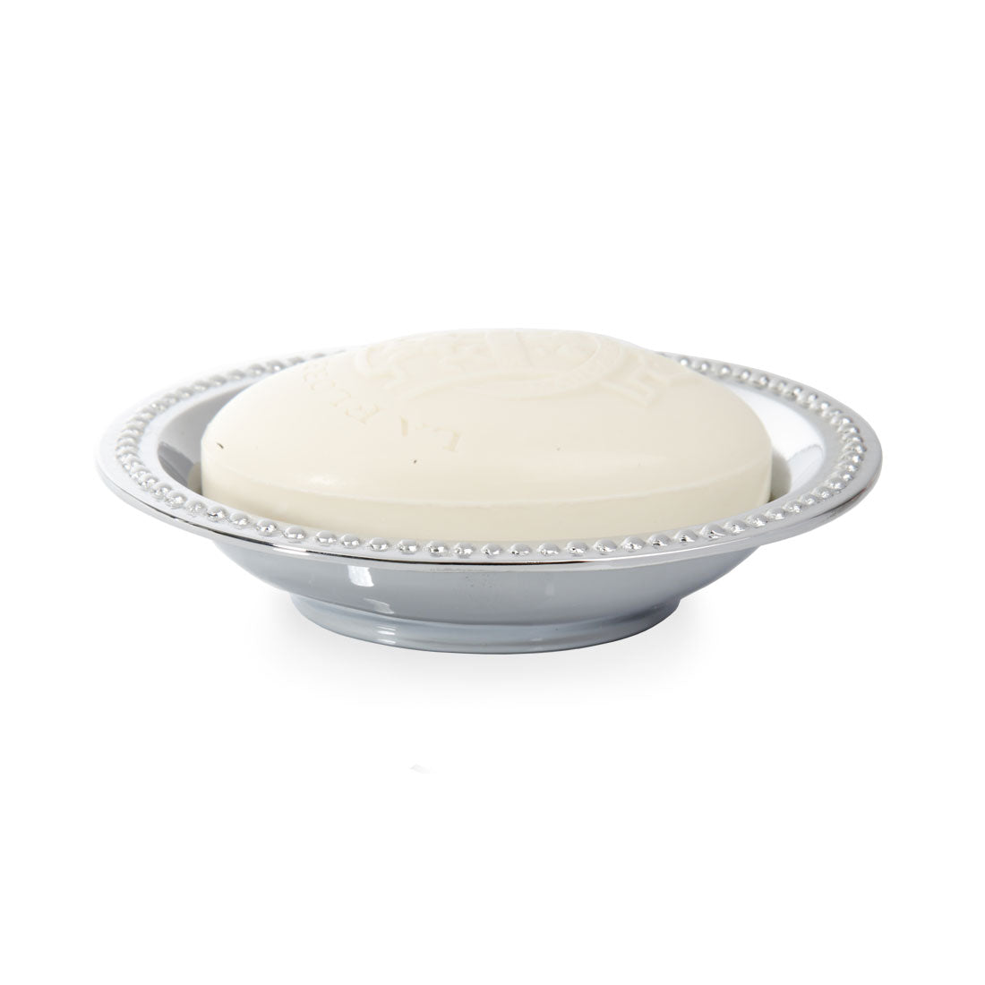 This regal soap dish is made of highly polished metal and adorned with a delicate dotted design along the rim, making it a glamourous addition to any bathroom. Mix it with complementary and contrasting bathroom accessories to add timeless style to your home.